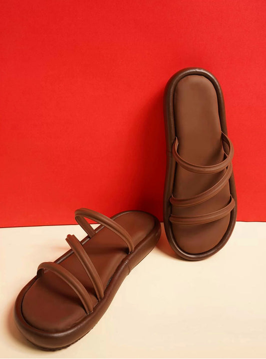 Strappy Wedge Heeled Sandals with Buckle Fastening