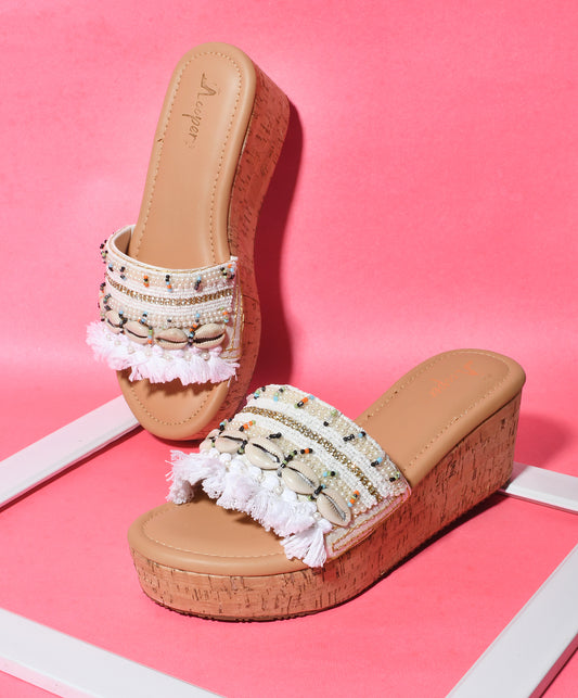 Strappy Wedge Heeled Sandals with Buckle Fastening
