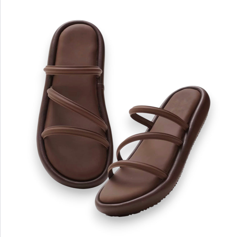 Elevate your everyday look with our chic Multi-Strap Flat Slides—where comfort meets effortless style.